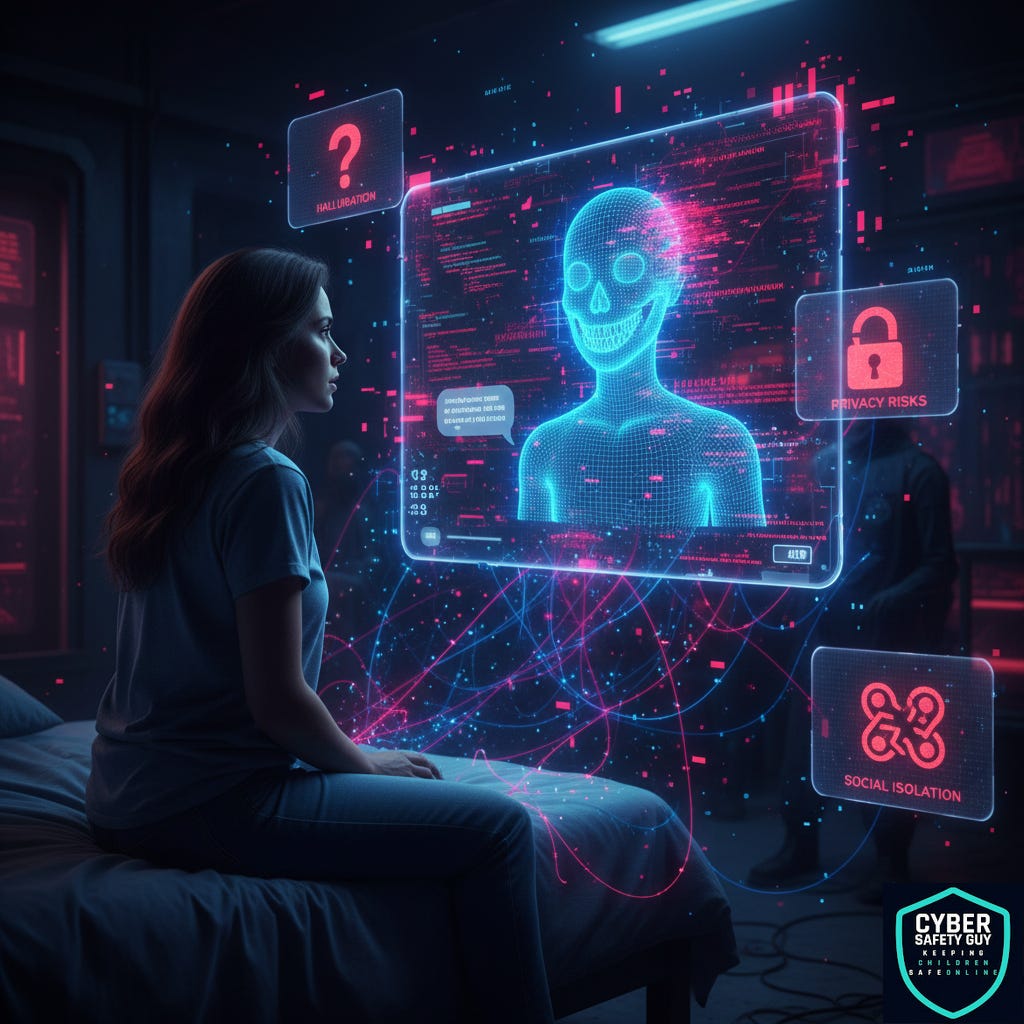 As I have said before in other posts, AI can be a great tool and is only going to become more integral in daily life. A risk for anybody, though, is becoming too reliant on it for social interaction or problem-solving, which could hinder a child’s development of critical soft skills. Learning how to navigate social cues, resolve conflicts with real people, or develop independent critical thinking are important parts of growing up that we all learned out in the real world with real people.