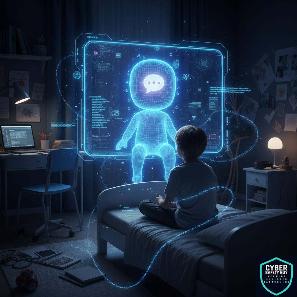 Platforms such as Character.AI, Snapchat’s My AI, and a growing number of others offer incredibly sophisticated artificial intelligence designed to chat, assist with homework, and even provide emotional support. Platforms like this are engaging, available 24/7, and designed to be excellent listeners. For many children, these AI bots are becoming constant companions, worryingly sometimes even filling the role of a trusted adult!
