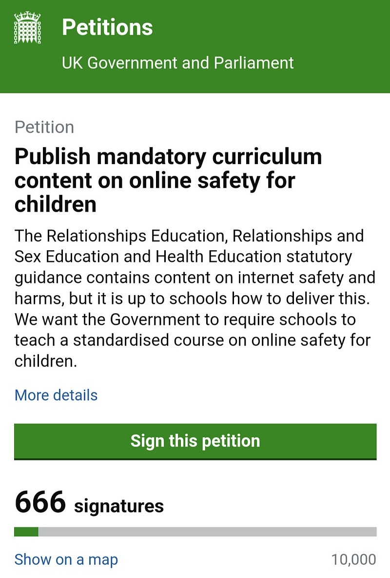 Petition: Publish mandatory curriculum content on online safety for children
