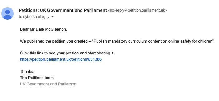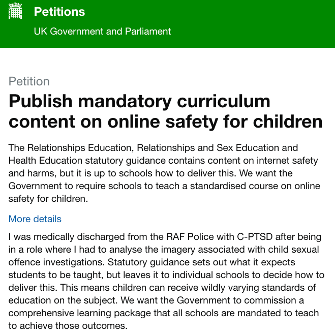 Please sign the petition! "Publish mandatory curriculum content on online safety for children."