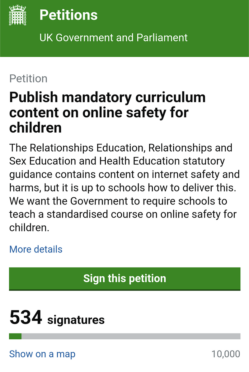 Currently, it has over 19k impressions and the petition has 534 signatures. I will need that support over the next 6 months as we try to hit 10,000 signatures but in my heart, I would give anything to get it over the 100k required to get a proper debate in parliament.
