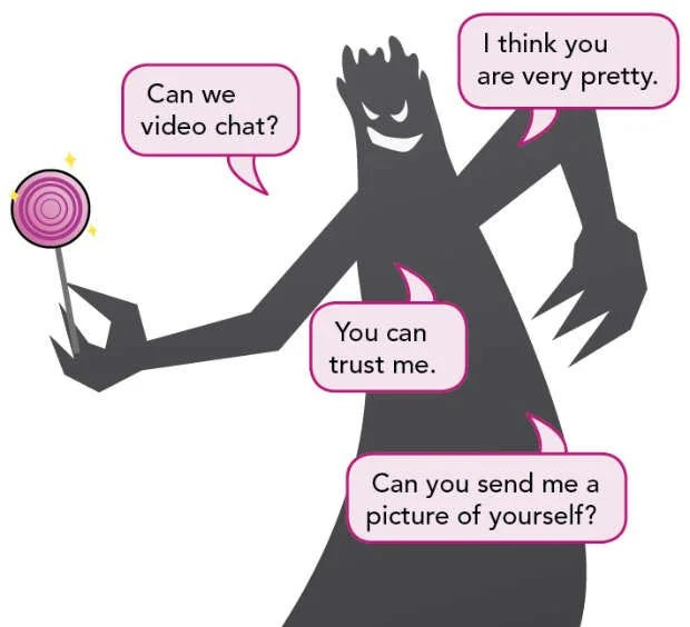 Recognise Red Flags: Teach children to identify warning signs in online interactions, such as requests for personal information, photos, or videos; suggestions to meet offline; moving conversations to private channels; and requests to keep secrets.